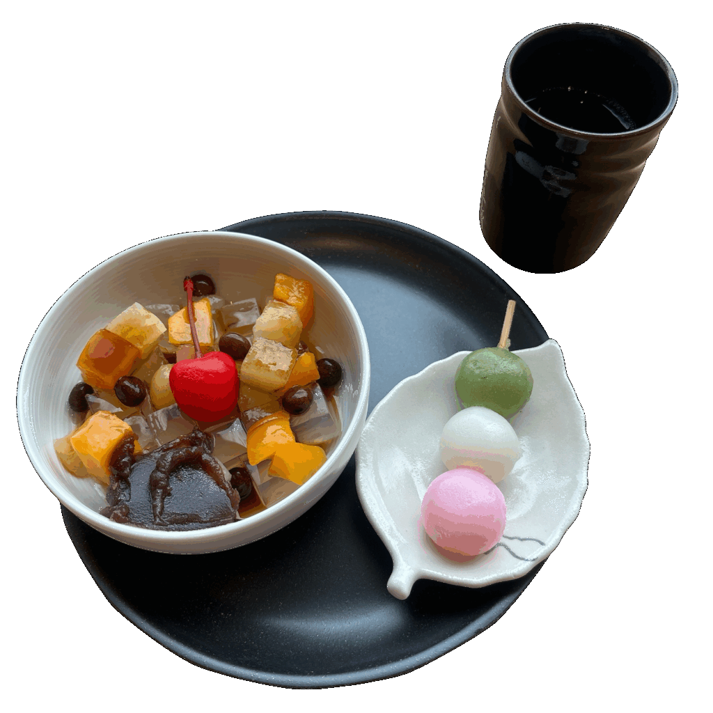 三色団子とあんみつ 緑茶セット